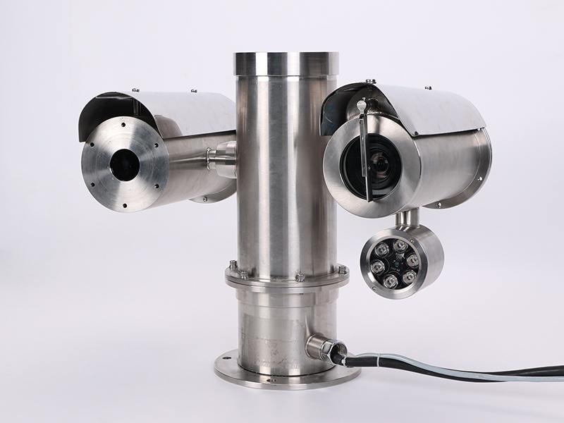 探测终端内采用高灵敏度320×256高工作温度的二类超晶格中波制冷红外焦平面探测器,通过有线网络可实时观测 VOCs 气体泄漏状态的双光图像,系统适用于工业领域 VOCs 气体泄漏的实时在线检测。例如炼油厂、海上油气开采平台、天然气储存运输场所、化学化工业、生物气体厂和发电站等。